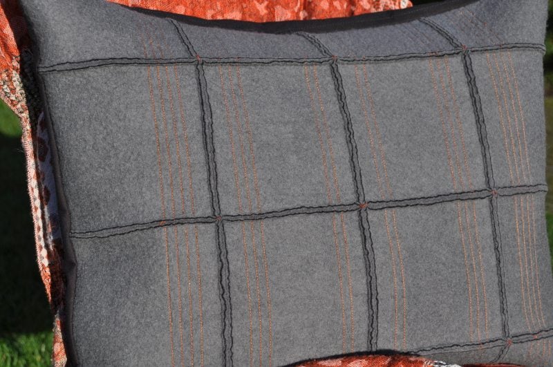 Ein Kissen mit verschiedenen Lagen gefilzt und genäht